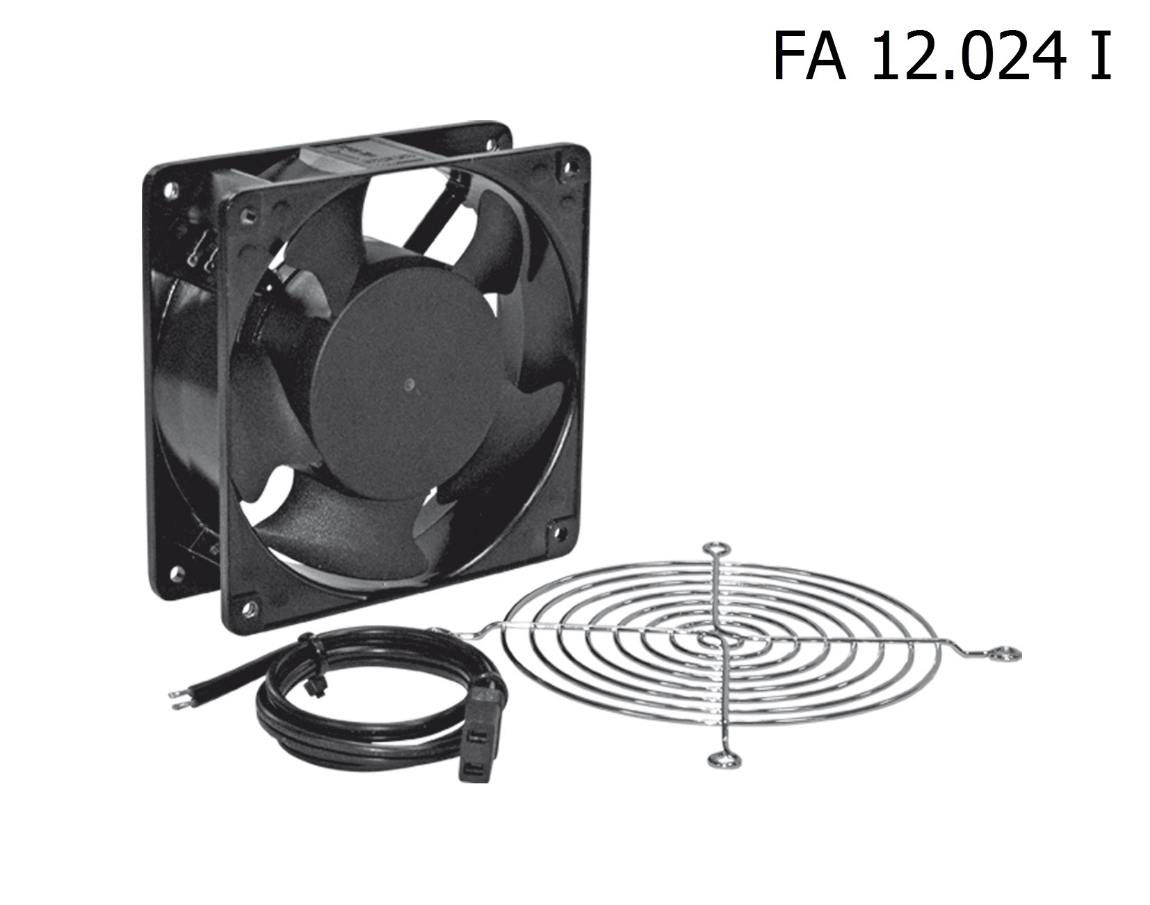 Подходит для установки в настенные шкафы. Отличается высокой эффективностью, легкостью монтажа и простотой обслуживания. В комплект помимо вентилятора входит защитная решетка и соединительный кабель 0,61 м. Электропитание - 24В, DC. Размер - 120х120х38 мм.
