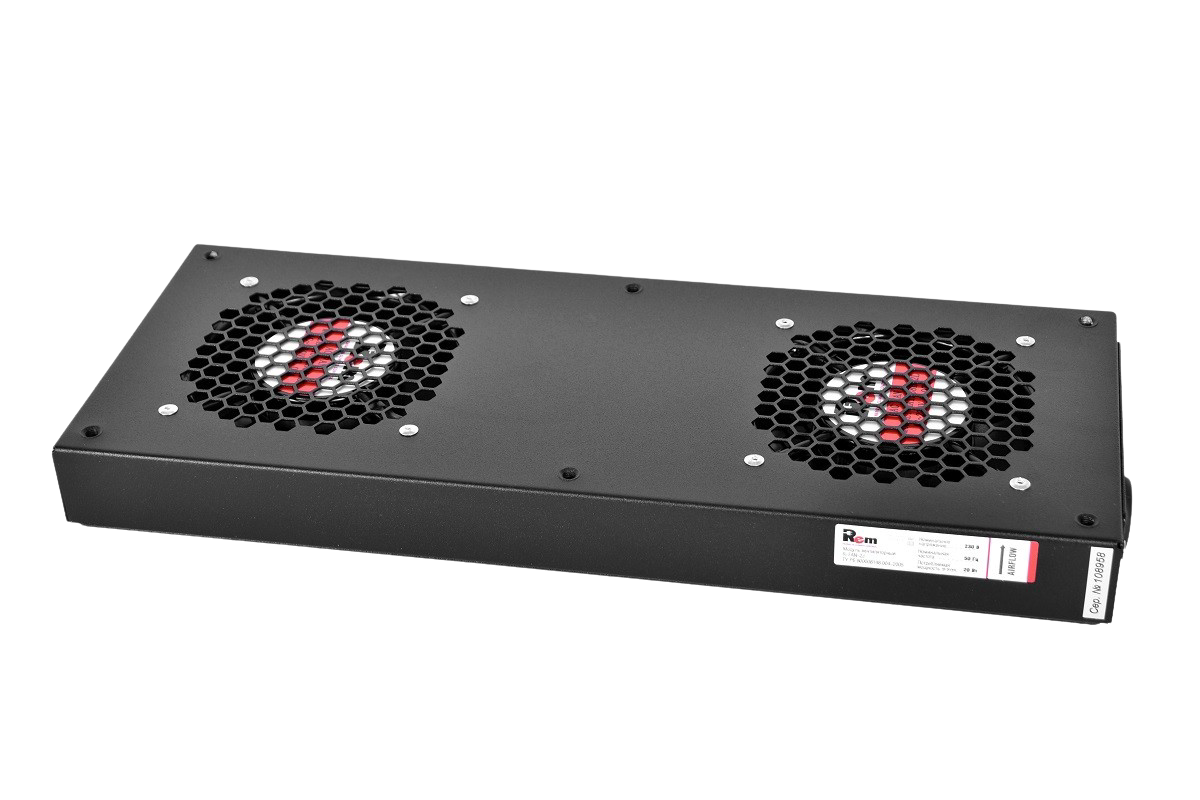 Модуль вентиляторный R-FAN-2J-9005 черного цвета предназначен для отвода или нагнетания воздуха в шкафах ЦМО и Elbox, что способствует охлаждению установленного оборудования.