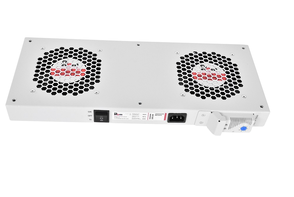 Используется для установки в подготовленное отверстие (крыша/дно) в настенных и напольных телекоммуникационных шкафах (ШРН, ШРН-Э, ШРН-М, ШТК-М, ШТК-ПМ, ШТК-Э, ШТК-С, ШТВ и EMS). Модуль вентиляторный с двумя односкоростными, осевыми вентиляторами с изменением направления потока (направление потока указан на этикетке стрелкой) и терморегулятором. Порог включения задается в пределах от 0 до +60⁰С, порог выключения - понижение температуры на 7⁰С от заданной.