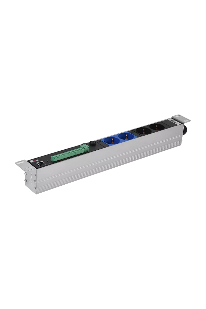 Управляемый блок силовых розеток с мониторингом имеет 4 порта стандарта Schuko (две управляемых группы), выполнен в анодированном алюминиевом корпусе. Вход кабеля питания - клеммная колодка. Кабель питания в комплект поставки не входит. Совместим со всеми линейками 19” монтажного оборудования. Поставляется в индивидуальной упаковке с комплектом крепежа. Выполнен в системе несущих конструкций 482,6 мм по ГОСТ 28601.2 (19-дюймовые конструктивы по МЭК 297). Степень защиты IP20, в составе блока два предохранителя 15А. Номинальный ток нагрузки 32А.